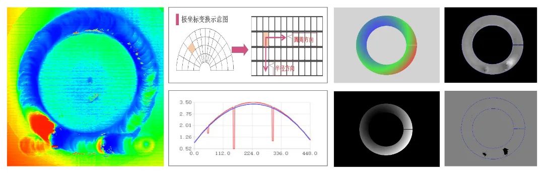 在软件方面,OPT还发布了自研3D算法。3D被称为视觉界的“显微镜”,能获取更丰富的数据和远超于2D视觉的冲击力,从而提高检测的精度,并简化图像处理流程。以锂电密封钉缺陷检测为例,传统的方案对于这种环形的目标,可能会出现检测目标缺失的情况,而OPT自研3D算法,引入极坐标变换,将环形变为矩形再以Y方向作为曲线拟合的方向计算出标准的曲线,构造基准曲面,最终解决此难题,完全契合了锂电行业需求。