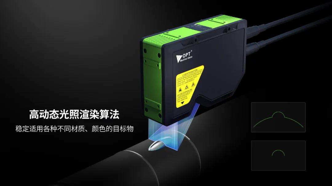 同时,OPT 3D激光轮廓扫描仪结合高动态光照渲染算法,实现高速调谐激光功率与增益,可精确测量低反射和高反射率的金属物体,或检测颜色背景无差异的胶路,能稳定适用不同材质、颜色的目标检测物,场景通用性强。