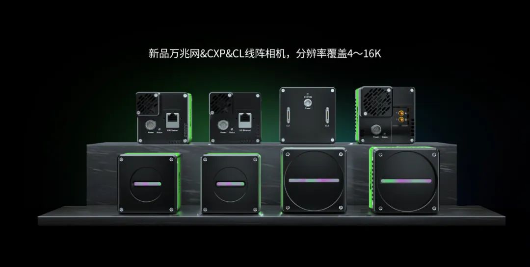 本次发布的新品共12款,分别有万兆网、CXP及CL系列的新品,分辨率覆盖4~16K;从芯片、像元尺寸、行频、带宽等多方面进行升级,并集成了ISP图像算法,更能满足用户提质增效需求,可广泛应用于锂电、光伏、印刷、薄膜等行业。