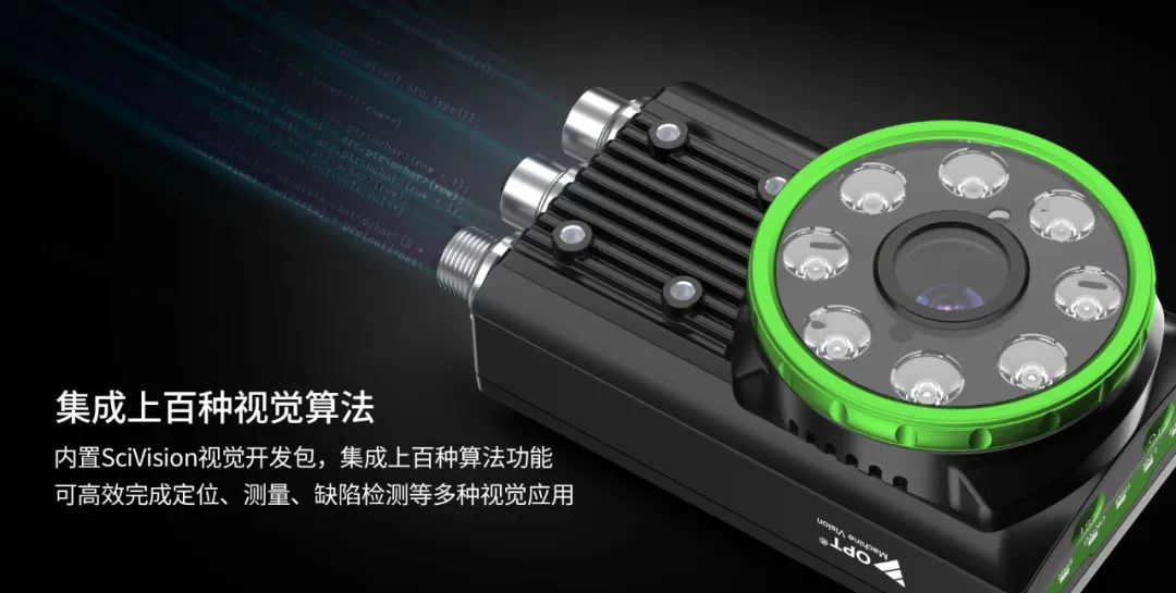 OPT(奥普特)基于SciVision视觉开发包,全新推出多功能一体化智能相机,采用图形化编程设计,操作简单、易用;不仅有上百种视觉检测算法加持,还支持深度学习功能,能轻松应对计数、定位、测量、识别及缺陷检测等各类复杂应用场景。