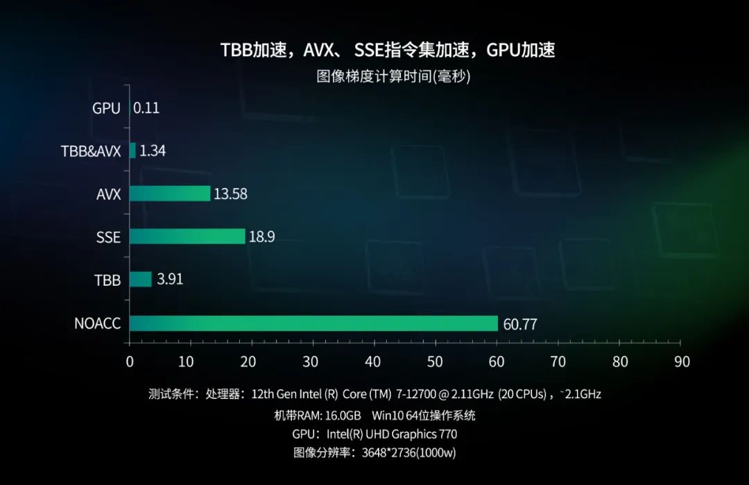 同时,Smart3视觉软件还综合了多个行业检测需求,对典型算法模块进行针对性优化,显著提升算法运行效率;并充分利用了TBB、AVX、SSE指令集等进行加速,多线程并行处理数据,流程响应速度可达毫秒级,显著提升系统运行速度,为用户提供更好的体验。
