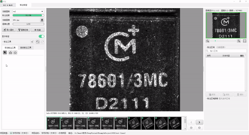 DeepVision3配备多项智能辅助标注工具。对于字符识别任务,DeepVision3内置通用OCR和集中检查功能实现字符的半自动化标注,可对任意方向的字符或多行带角度文本进行识别,用户只需要核对结果。