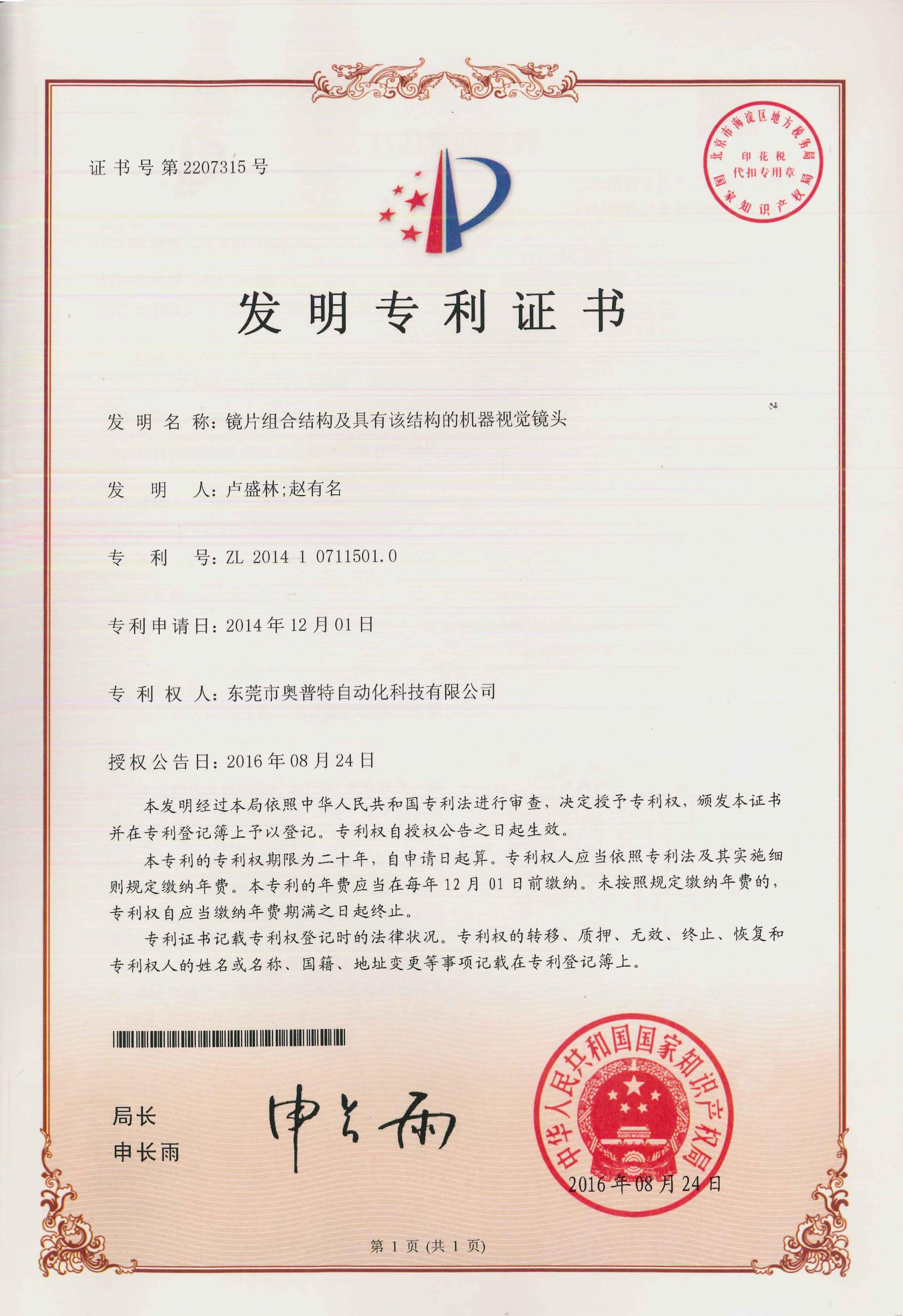 一种镜片组合结构及具有该结构的机器视觉镜头