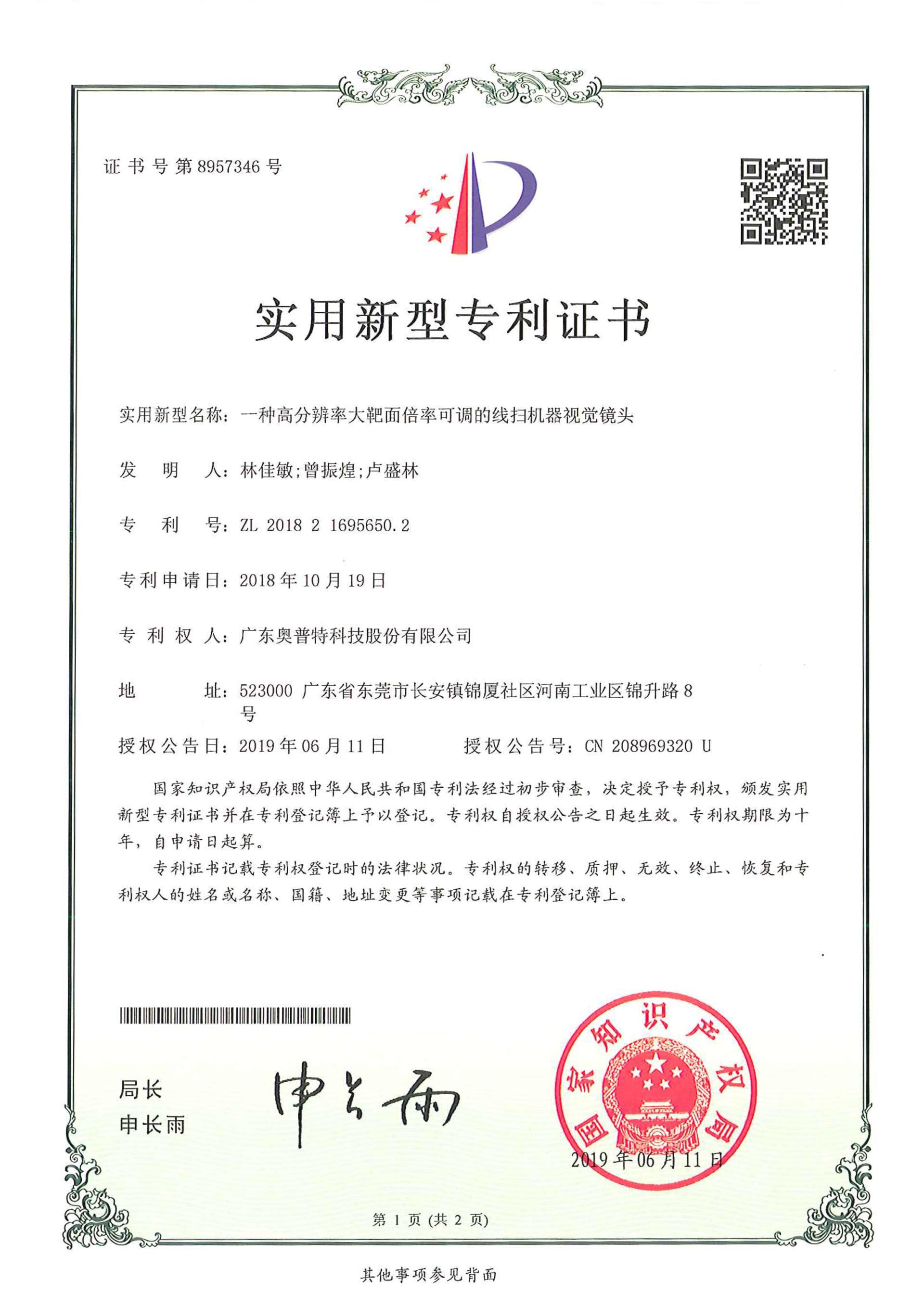 一种高倍率大靶面高解析度线扫机器视觉镜头