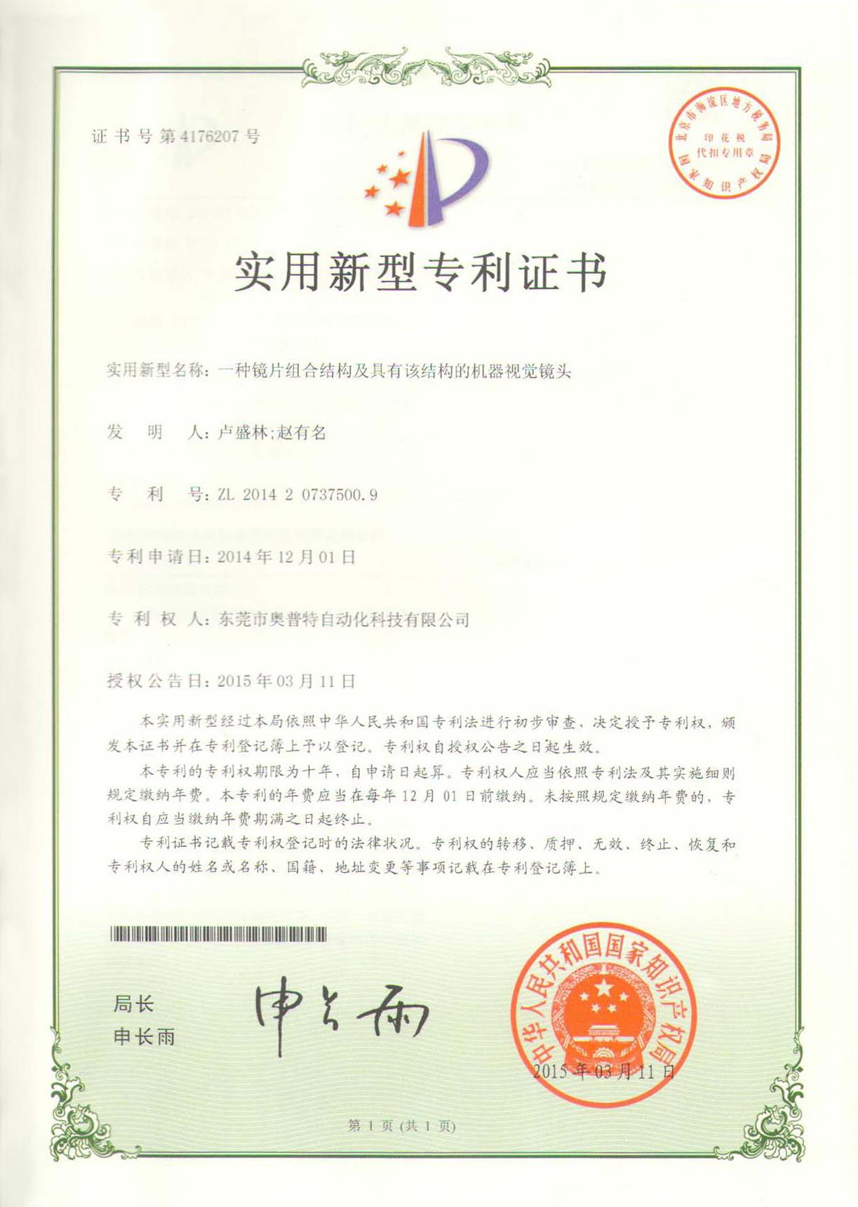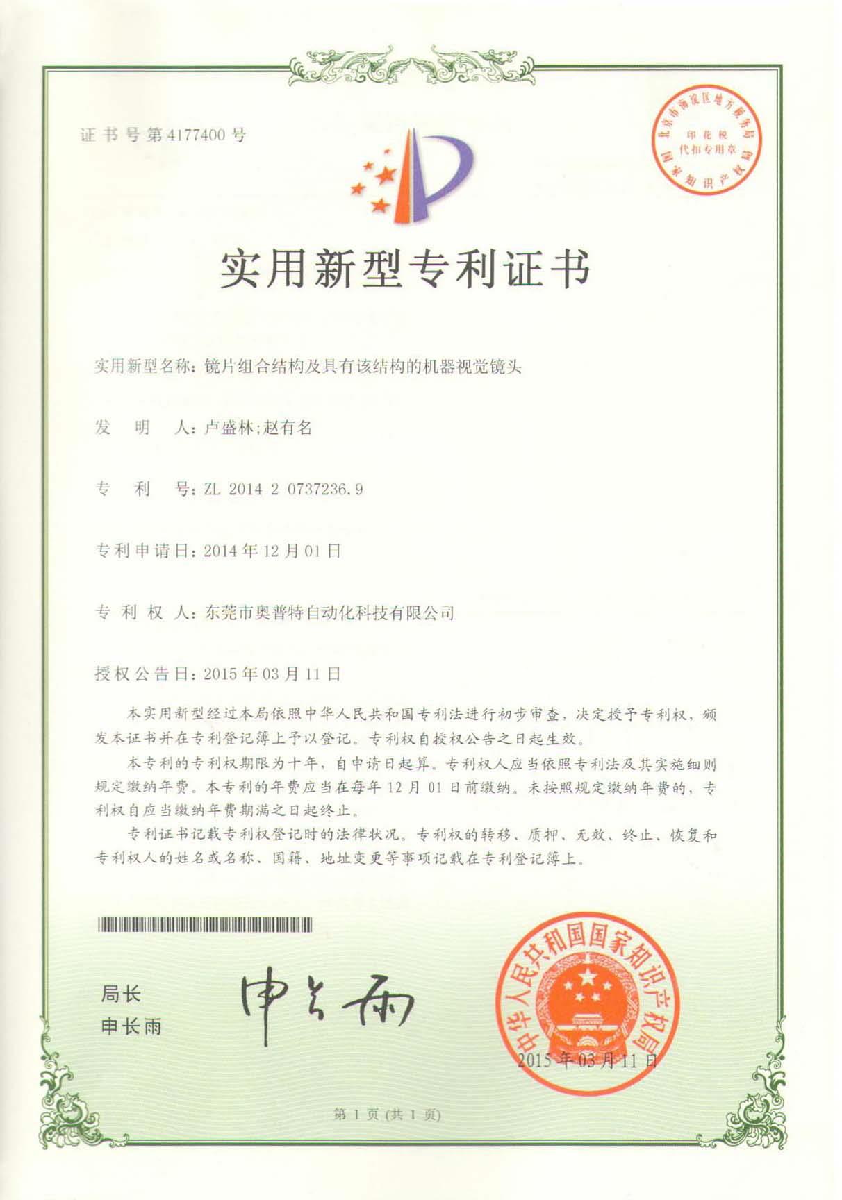 一种镜片组合结构及具有该结构的机器视觉镜头