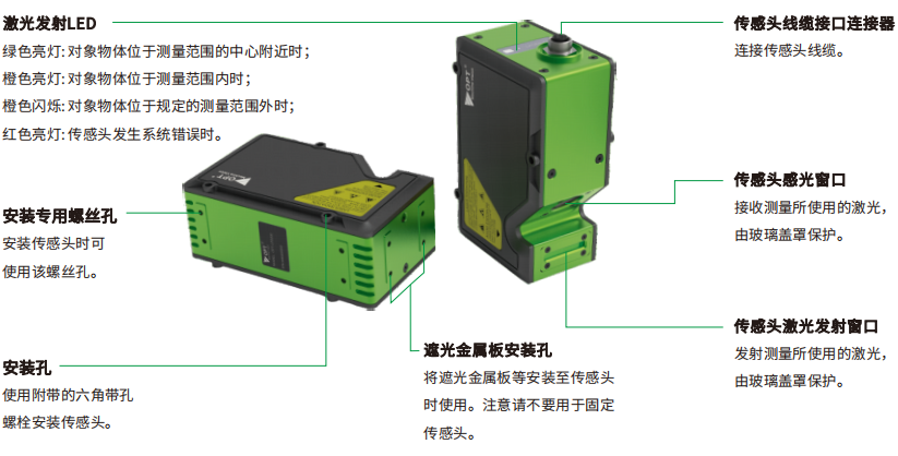 ◆高动态范围CMOS,高速调谐激光功能与增益,稳定适应不同材质不周颜色的目标物。