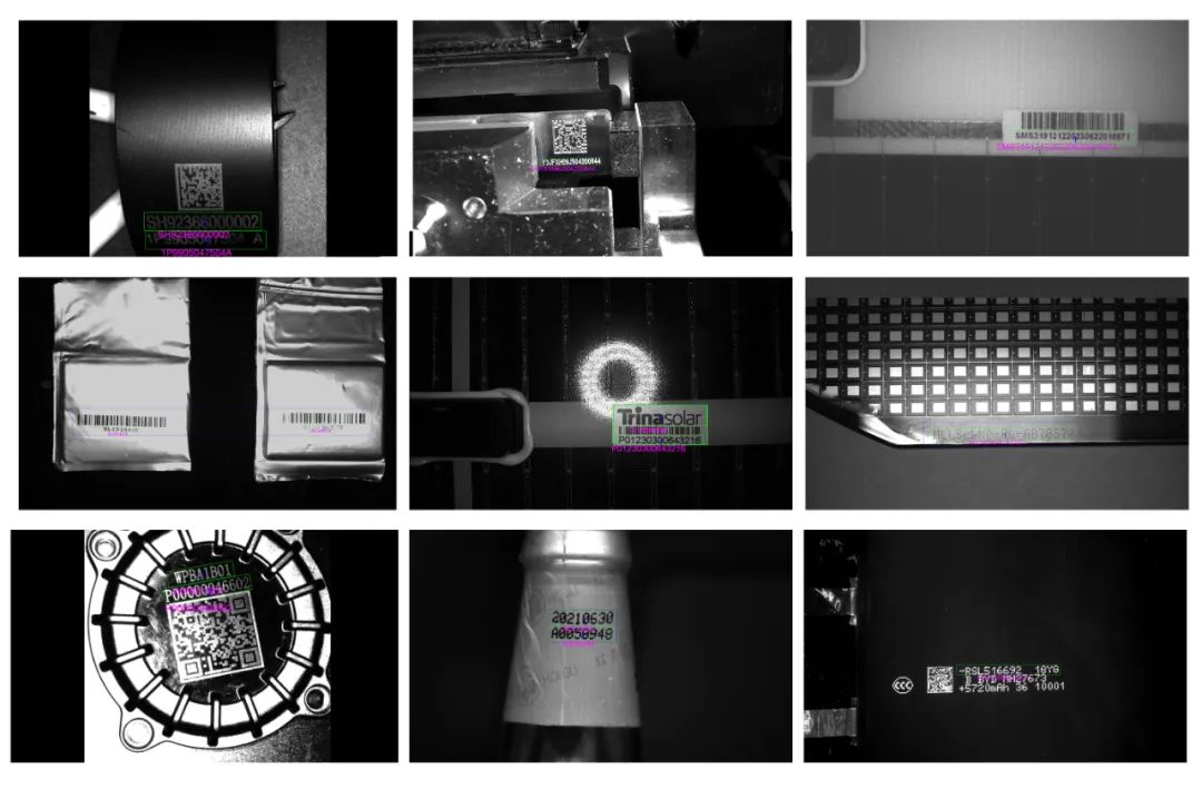 依托海量数据的深度训练,模型展现出卓越的字符特征提取、定位和识别能力,赋予读码器高度的适应性和泛化能力,使其能够灵活应对各种字体、字号的变化以及复杂背景图像的挑战,轻松读取模糊、脏污、变形、反光等各类异常条码,兼容中英文标点符号等7000多种字符,即使面对全新应用场景,也无需调整算法参数,仍然保持识别的精准度与稳定性。